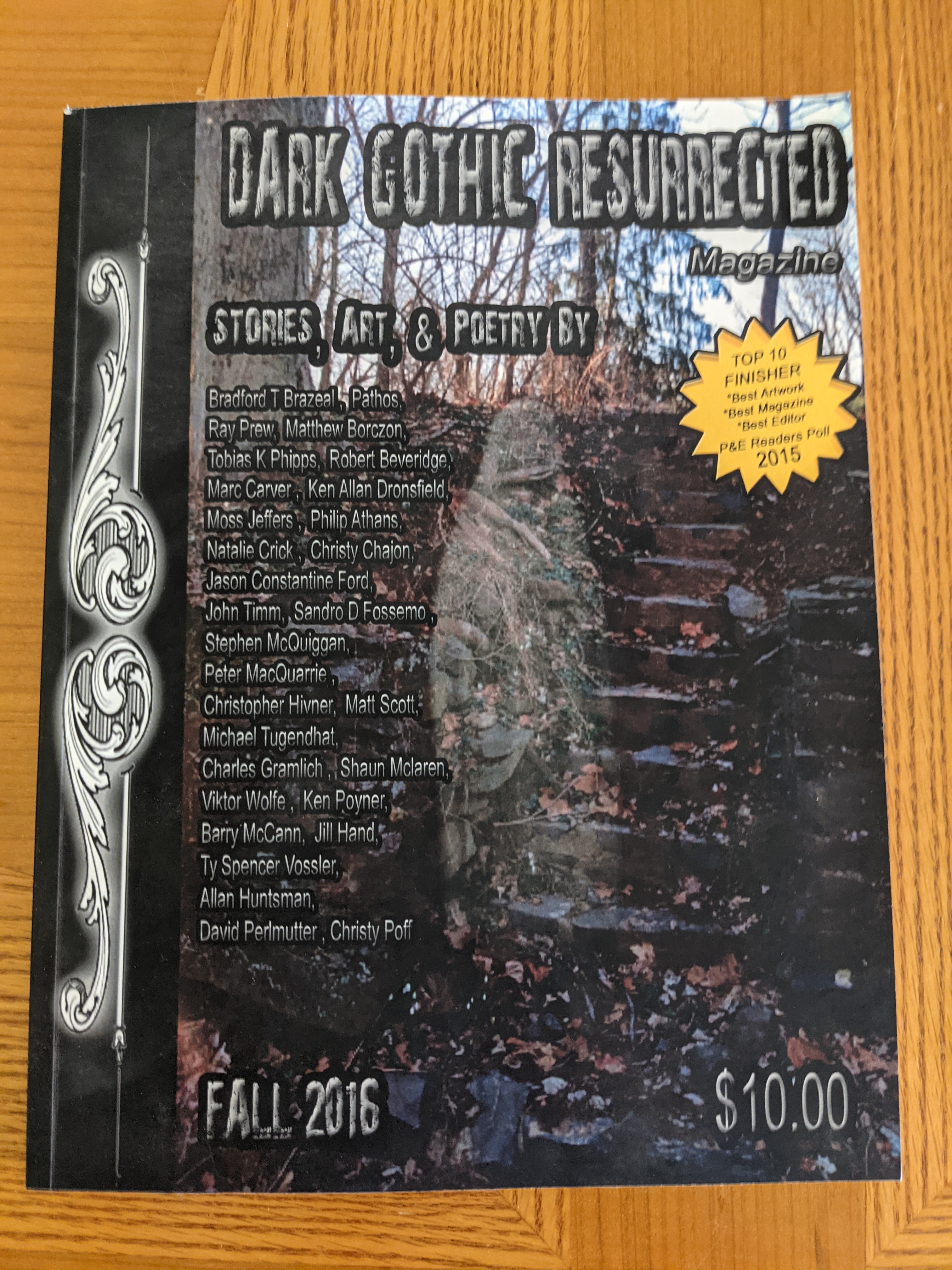 My euphoria seemed uncontainable that morning when I received the acceptance letter from Dark Gothic’s chief editor Ms. Cinsearae S. I called my mom, some of my brothers, cousins. I paced the living room, exclaiming celebratory remarks. Later that evening at work I was telling random strangers the good news. I could finally say I was a real author. Someone else liked my work well enough to exhibit it in their magazine.